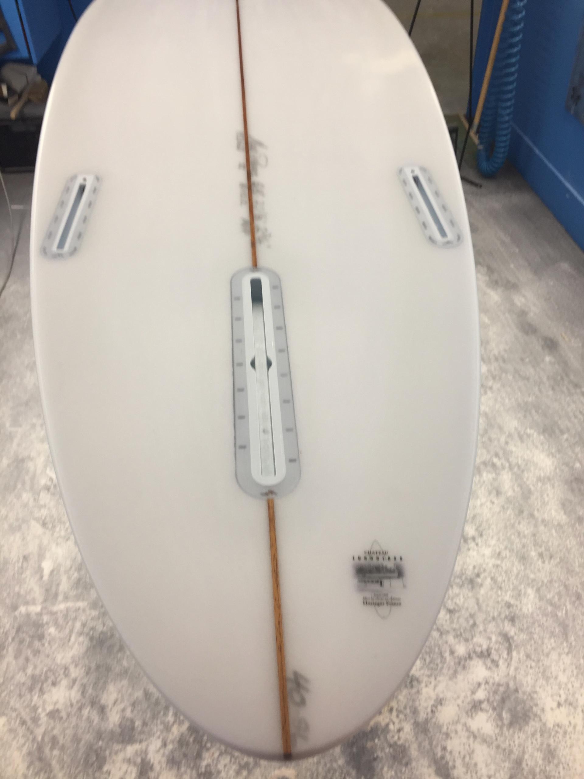 The Mark Phipps Crazy B is a modern homage to a beautifully preserved 1970s single fin—an original gem owned by Ben, who wanted to protect the board’s legacy while still enjoying its unique feel in the water. To preserve the original, Phipps crafted a faithful replica, capturing the authentic curves, flowing lines, and soulful character of the era. What began as a pure single-fin reproduction later evolved when Ben added side fin plugs, giving the Crazy B a versatile, modern twist while honoring its roots.